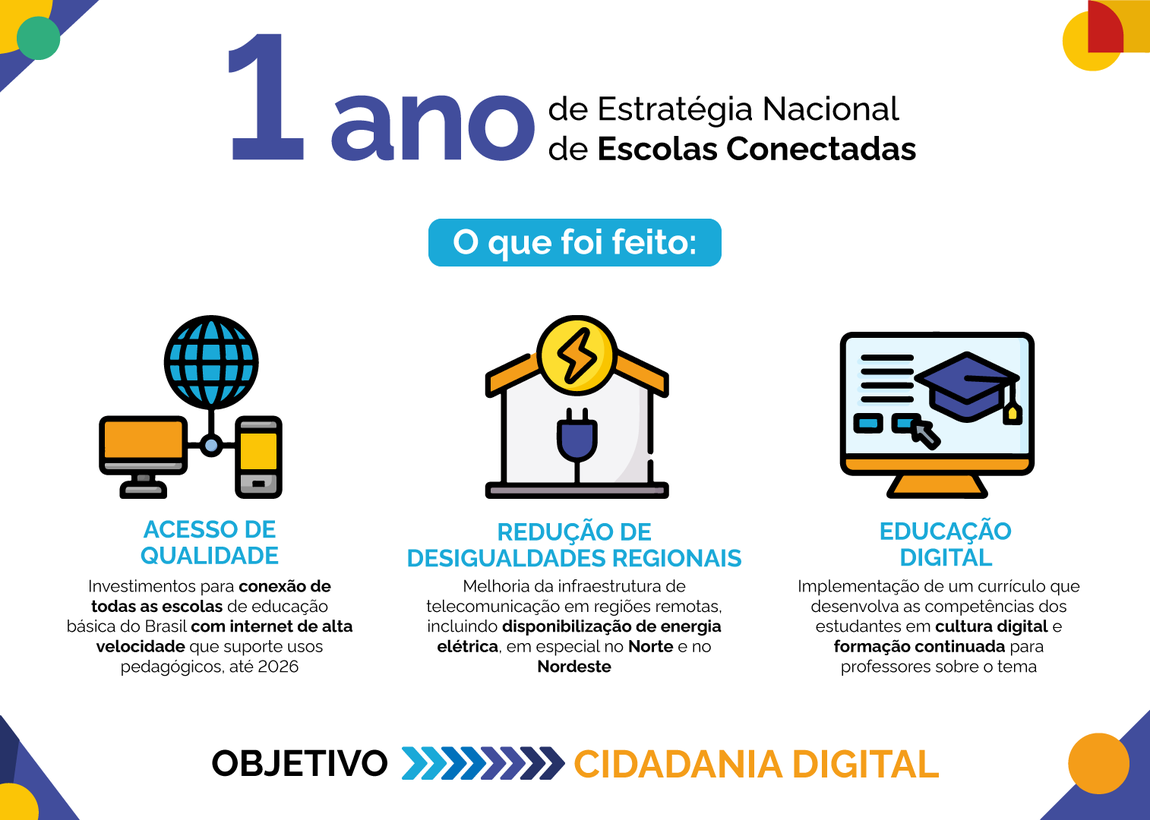Escolas Conectadas – A Estratégia Nacional de Escolas Conectadas, coordenada pelos Ministérios da Educação e das Comunicações, reuniu todas as políticas públicas relacionadas e em andamento no governo federal.
